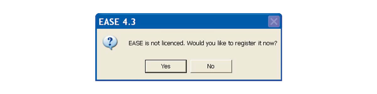 그런 다음 EASE 4.3 데스크탑 창에서 등록 아이콘을 더블 클릭하거나 도움말 드롭다운 메뉴를 열고 등록을 선택하세요. 아래와 같은 EASE 등록 프롬프트가 열립니다.